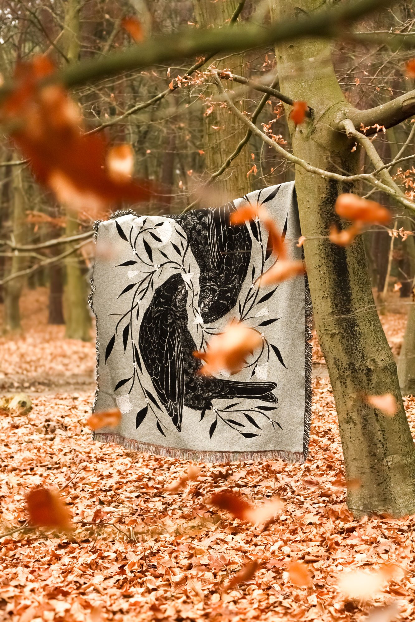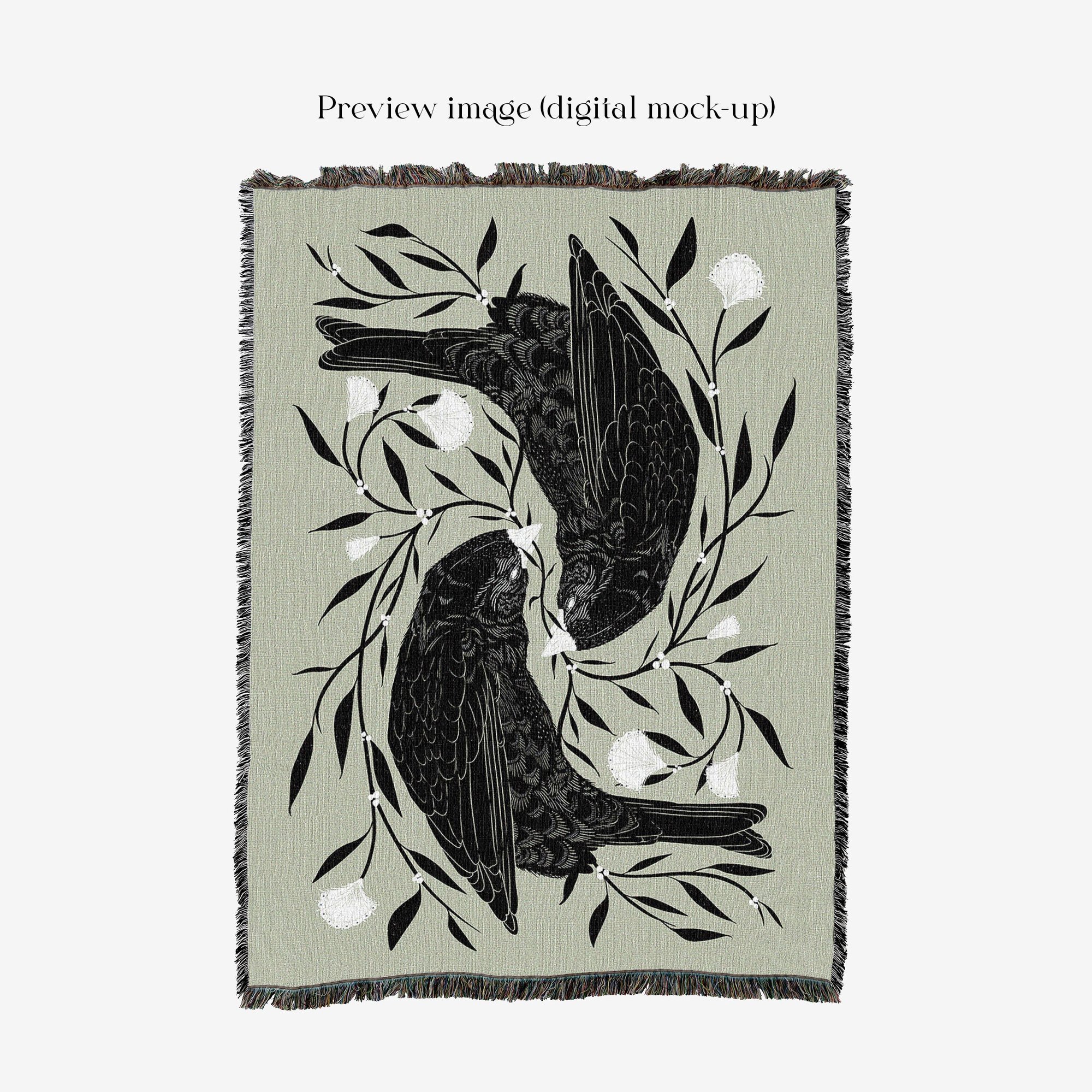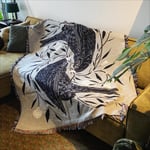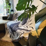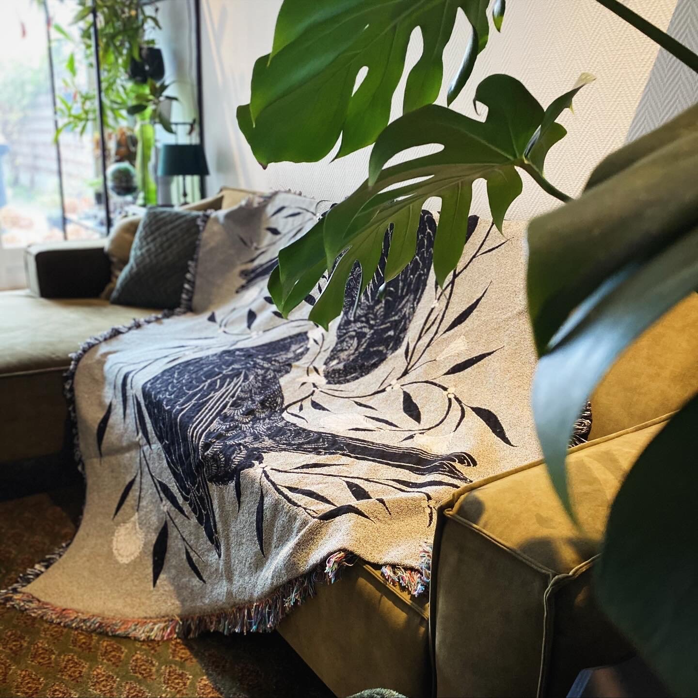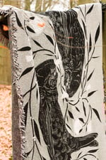 The design is woven on Jacquard looms, operated by experienced weavers who translate the artwork into layered threads and textures. This gives the illustration a slightly tactile, woven look that feels different from a printed blanket.